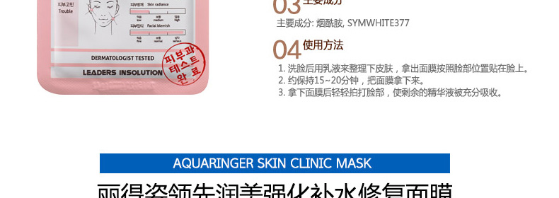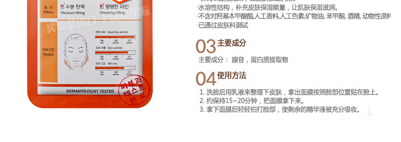 2盒裝韓國直郵麗得姿Leaders領(lǐng)先潤美系列膠原修復(fù)面膜 彈力保濕緊致 10片/盒—— 1、是含有50%蛋白質(zhì)成分的新款膠原蛋白面膜。 2、彈力保濕、緊致修復(fù)。 3、失去彈力有皺紋的肌膚,及干燥松弛的肌膚尤其適用! |