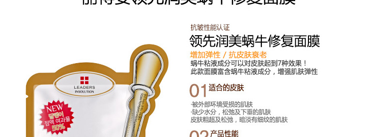 2盒裝韓國直郵麗得姿Leaders領(lǐng)先潤美系列膠原修復(fù)面膜 彈力保濕緊致 10片/盒 |