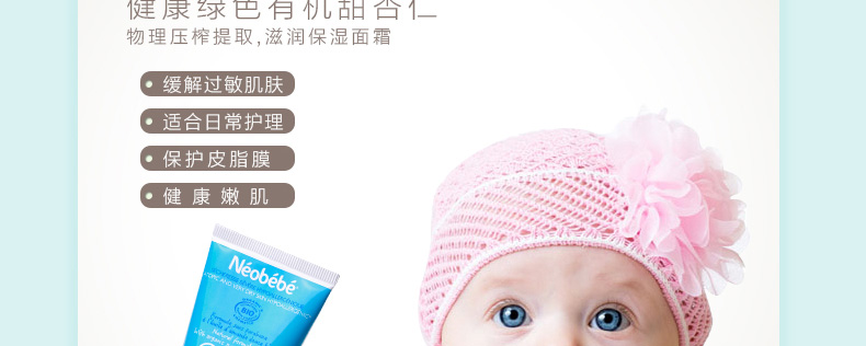 法國(guó)NEOBEBE尼歐貝貝嬰兒有機(jī)潤(rùn)膚面霜 普羅旺斯系列甜杏仁面霜 寶寶護(hù)膚40ml/瓶—— 1、天然植物萃取,舒緩保濕干燥肌。 2、溫和柔滑滋養(yǎng)寶寶敏感幼嫩肌膚。 |