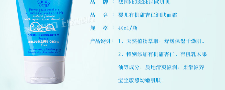 法國(guó)NEOBEBE尼歐貝貝嬰兒有機(jī)潤(rùn)膚面霜 普羅旺斯系列甜杏仁面霜 寶寶護(hù)膚40ml/瓶 |