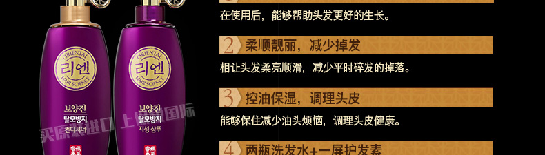 3瓶裝 韓國直郵 LG REEN睿嫣洗發護發 滋潤秘策防脫發油性頭皮適用400ml/瓶*3 洗發水 護發素任選—— 1、有效緩解脆弱易斷發、頭屑頭癢、油膩等狀況。 2、控油成份美人草和去頭屑成份黃蓮和黑草熬制而成。 |