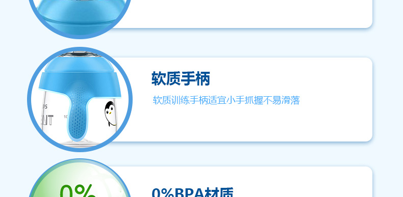 英國 Avent/新安怡飛利浦 卡通企鵝杯啜飲杯 1個裝 6個月以上寶寶適用水杯 200ml 藍色粉色隨機發貨—— 1、硅膠軟嘴,不傷寶寶口腔。 2、不易嗆水,寶寶較容易接受使用。 |