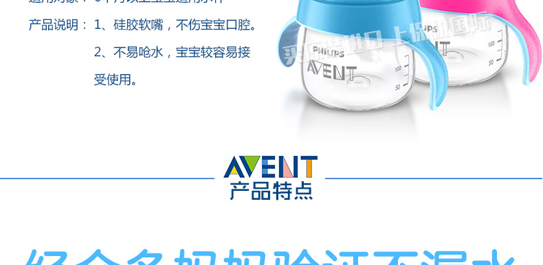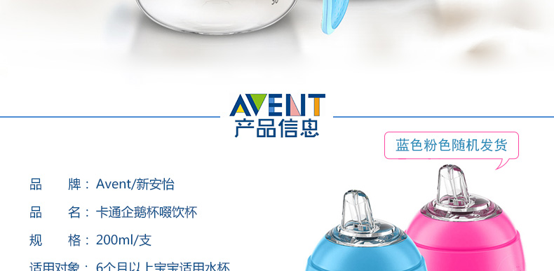 英國 Avent/新安怡飛利浦 卡通企鵝杯啜飲杯 1個裝 6個月以上寶寶適用水杯 200ml 藍色粉色隨機發貨 |