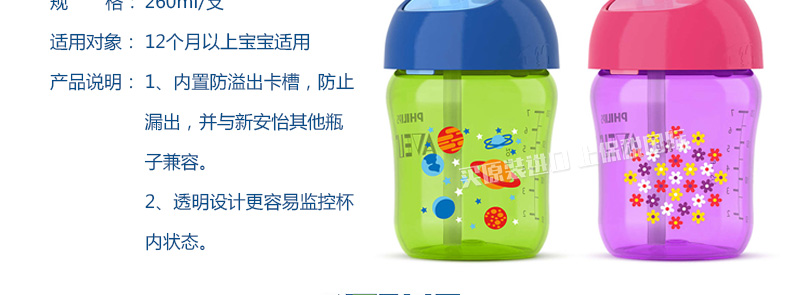 英國 Avent/新安怡 飛利浦寶寶吸管杯 1只裝多種顏色隨機發 12個月適用兒童水杯 260ml —— 1、內置防溢出卡槽,防止漏出,并與新安怡其他瓶子兼容。 2、透明設計更容易監控杯內狀態。 |
