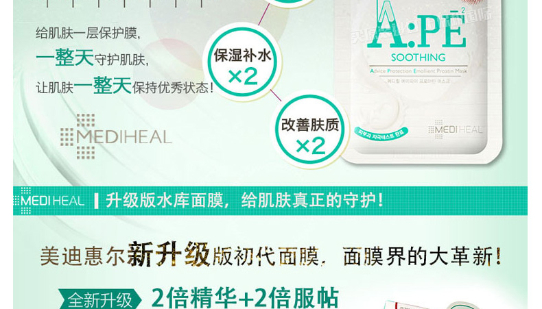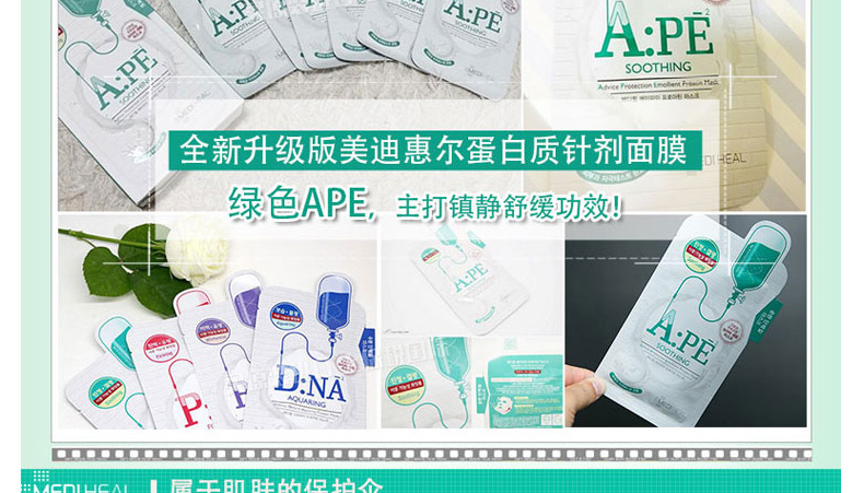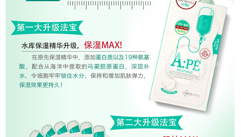 韓國美迪惠爾可萊絲MEDIHEAL水光針劑APE面膜APE水光針面膜 舒緩保濕 10片/盒 一盒/兩盒 |