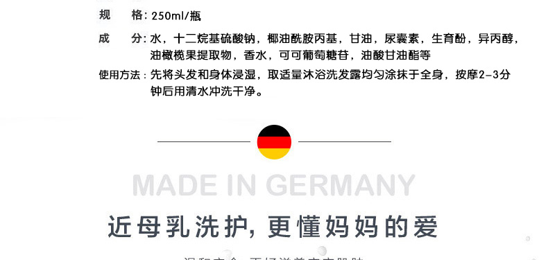 直郵碧芝萊泡泡慕絲嬰幼兒洗發沐浴露洗發沐浴二合一 溫和保濕護膚 200ml/瓶