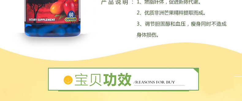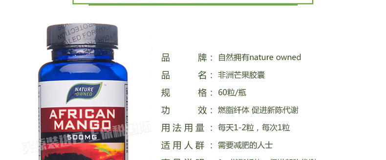 自然擁有nature owned非洲芒果膠囊60粒/瓶 燃脂纖體促代謝 成為A4小腰精—— 1、燃脂纖體,促進(jìn)新陳代謝。 2、優(yōu)質(zhì)非洲芒果精粹提取而成。 3、調(diào)節(jié)膽固醇和血壓,瘦身同時(shí)不造成身體損傷。 注意:孕產(chǎn)婦和18歲以下兒童不適用。 |