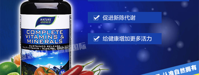 自然擁有nature owned完全維他命礦物質30粒 增免疫促代謝保心護肝 健康加油站 自信活力每一天—— 1、含有29種維生素及礦物質。 2、增強抵抗力,促進新陳代謝。 3、保肝護心,強健骨骼肌肉。 注意: 1、孕產婦及18歲以下兒童服用,請遵醫囑。 2、有消化性潰瘍病史及胃酸過多人員,不宜服用。 |