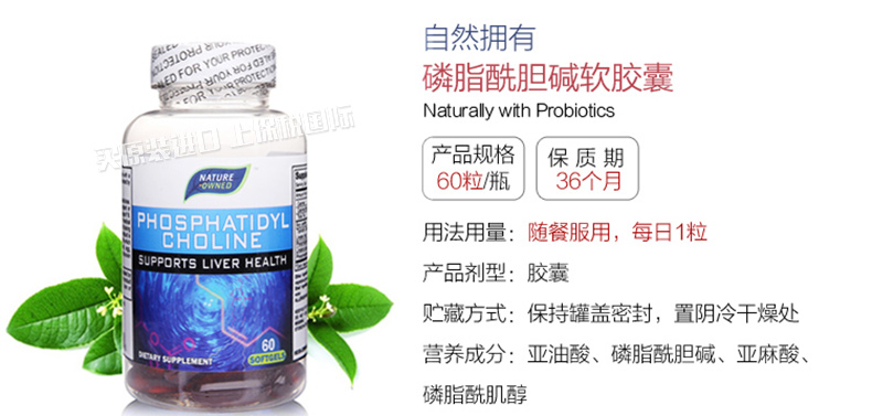 美國 自然擁有nature owned 磷脂酰膽堿 健腦益智保肝護肝調(diào)節(jié)血脂 60片/瓶—— 1、健腦益智,提高大腦活力; 2、調(diào)節(jié)血脂,預(yù)防動脈硬化癥。 |