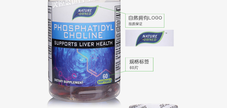 美國 自然擁有nature owned 磷脂酰膽堿 健腦益智保肝護肝調(diào)節(jié)血脂 60片/瓶 |