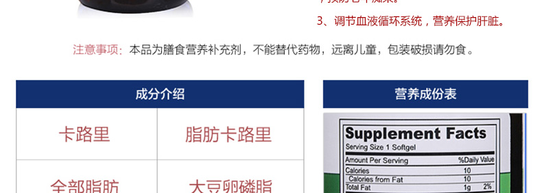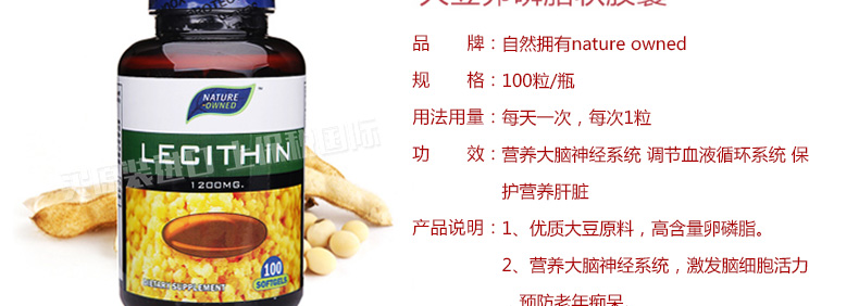 自然擁有nature owned大豆卵磷脂軟膠囊100粒 心腦血管健康營養庫—— 1、優質大豆原料,高含量卵磷脂。 2、營養大腦神經系統,激發腦細胞活力,預防老年癡呆。 3、調節血液循環系統,營養保護肝臟。 |