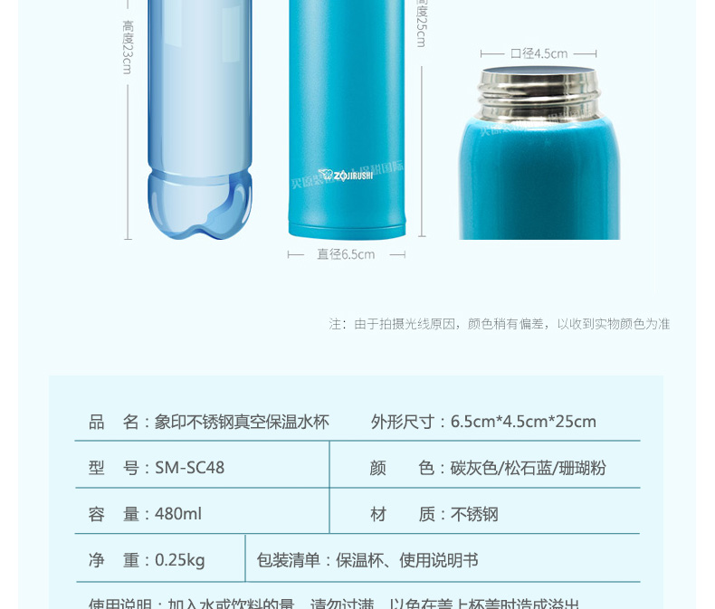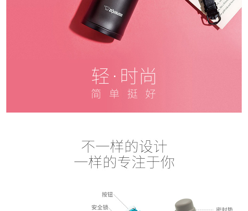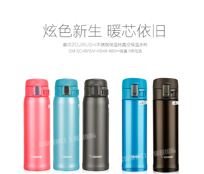 象印ZOJIRUSHI不銹鋼保溫杯真空保溫水杯SM-SC48/SM-KB48 480ml容量 5色任選—— 1、碳灰色、松石藍、珊瑚粉、黑褐色及海藍色5色任選。 2、可拆卸清洗杯蓋,清潔無死角。 3、安全鎖扣,單手一鍵開啟,不滲漏。 |
