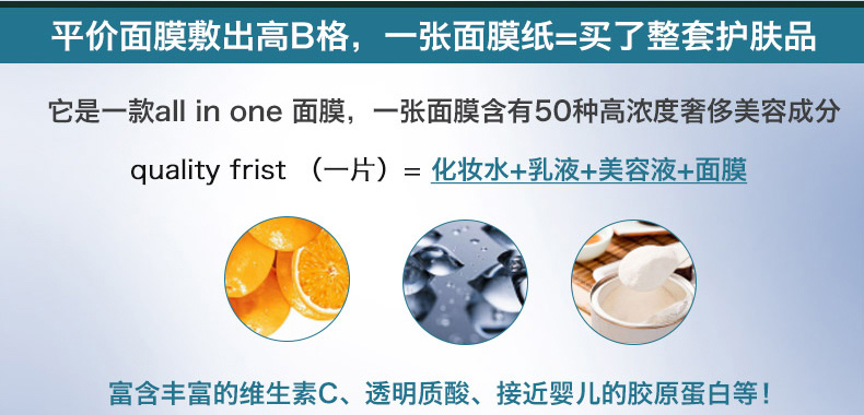 日本直郵皇后的秘密多效合一美白面膜 白色大容量30片/包 嫩白保濕收毛孔 一包/兩包—— 1、含有維生素C、透明質酸、膠原蛋白等50種美容精華。 2、親膚純棉面膜,30片大容量裝。 3、補水提亮,嫩白保濕收毛孔。 |