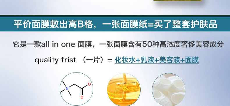 日本皇后的秘密黑色裝極致面膜多效合一抗衰老面膜3片/包 一包/兩包—— 1、含有甜菜堿、甘油、水解絲等多重美容成分。 2、純棉面膜紙,親膚柔軟更服帖。 3、補水保濕、修護抗衰老。 |
