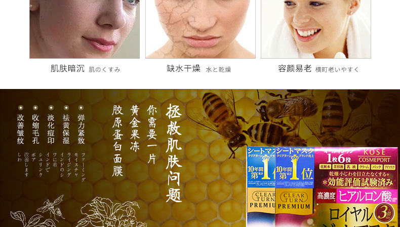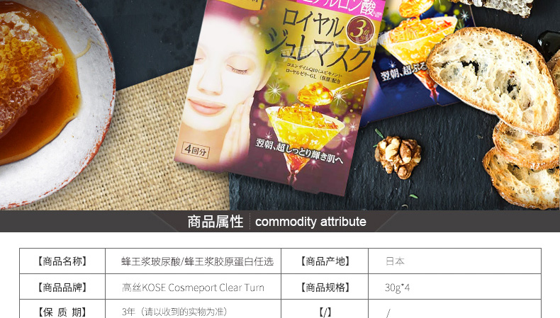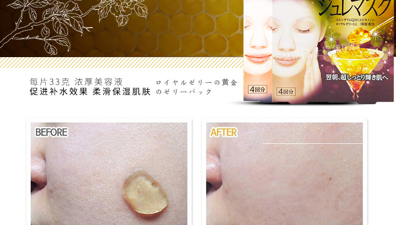 日本直郵高絲蜂王漿黃金果凍面膜 蜂王漿玻尿酸/蜂王漿膠原蛋白任選 4片/盒 一盒/兩盒任選—— 1、蜂王漿玻尿酸,和蜂王漿膠原蛋白任選。 2、純植物提取的柔軟面膜紙,服帖又衛生。 3、保濕滋潤、彈力嫩滑、延緩肌膚衰老。 |