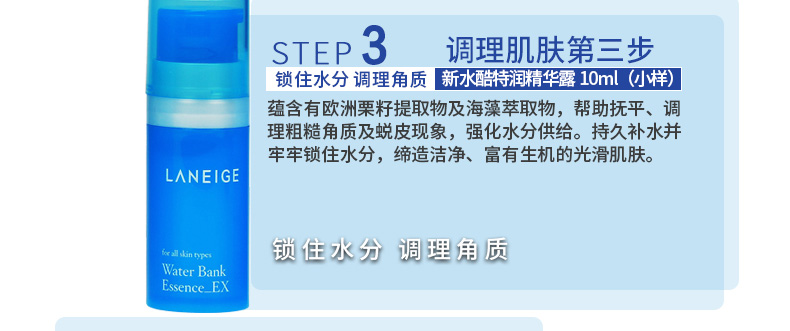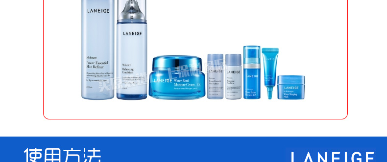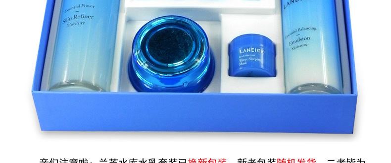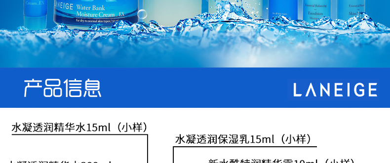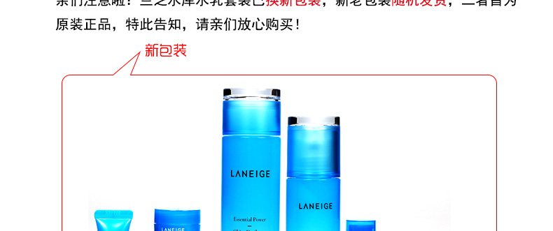 商品名稱 直郵蘭芝LANEIGE滋潤型水乳霜3件套盒贈5件中樣 全面滲透日夜滋養(yǎng)