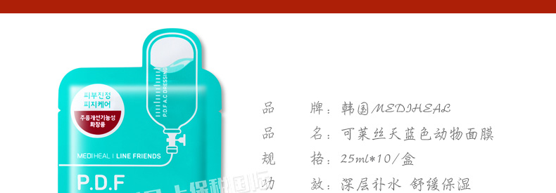 直郵美迪惠爾可萊絲天藍色動物面膜10片 敏感肌大福音肌膚水嫩不“暴躁” |
