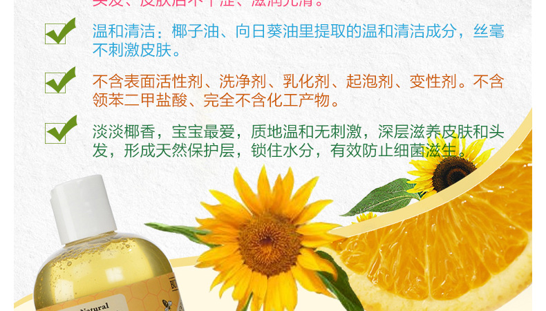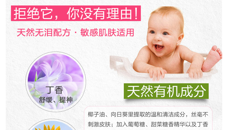 美國小蜜蜂天然香寶寶沐浴露 天然泡泡嬰兒沐浴露350ml/瓶 讓寶寶愛上洗澡 清潔保濕安撫 一瓶/兩瓶—— 1、含丁香、椰子油、葵花籽油等潔凈成分,泡沫細(xì)膩。 2、采用天然無淚配方,溫和不刺激,敏感肌膚也能用。 3、清潔肌膚,鎖水保濕,提神安撫。 |