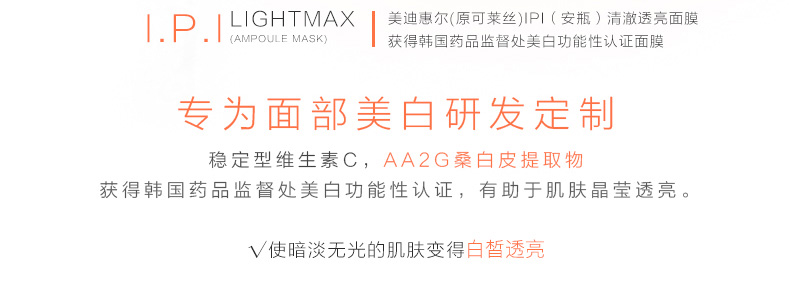 直郵美迪惠爾可萊絲IPI清澈透亮針劑面膜美白淡斑面膜 不可不知的白皙秘密10片/盒 1盒/2盒 |
