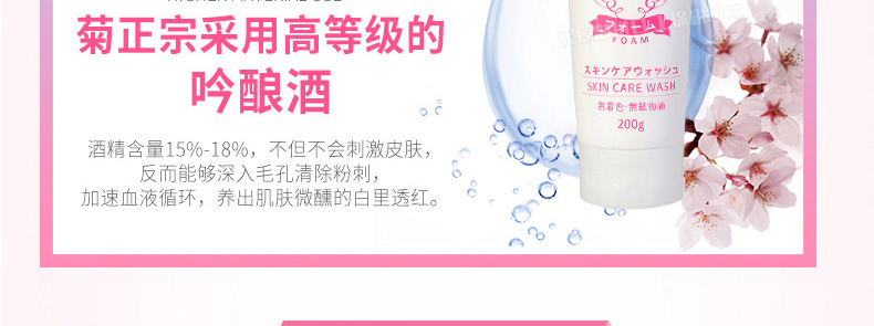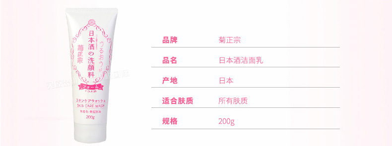 直郵菊正宗日本酒洗面奶潔面乳200g 清潔保濕去角質 養出白里透紅微醺好膚色 一支/兩支—— 1、含氨基酸、純米吟釀酒、酵母及酒釀再生蛋白等護膚成分。 2、泡沫濃密,細膩綿軟,清潔力強。 3、溫和清潔毛孔污垢和粉刺,保濕去角質。 |