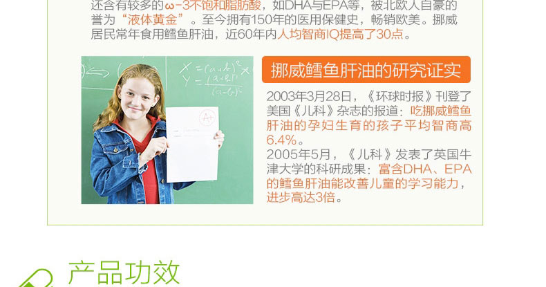 1、精心甄選挪威純凈海域的鱈魚原料,健康無污染。 2、富含多種維生素,專業定制膠囊,吸收率更高。 3、強健骨骼、保護視力、增強記憶力并提高免疫力。 |