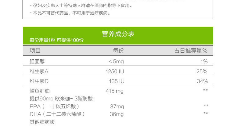 商品名稱 | 自然之寶挪威鱈魚肝油軟膠囊100粒 來自北歐凈海的“液體黃金” 強健骨骼保護視力 | ||