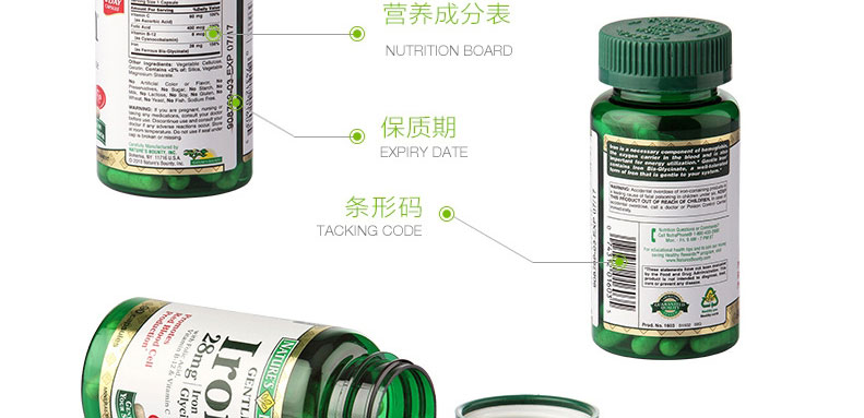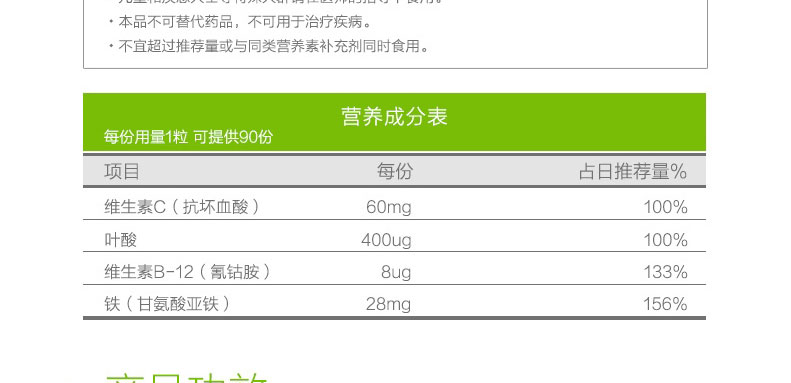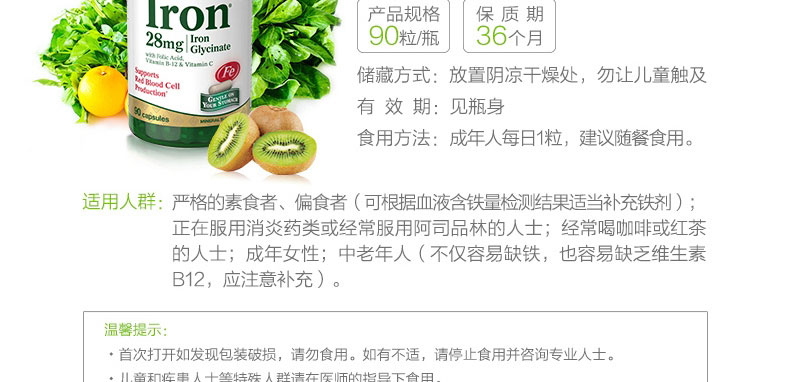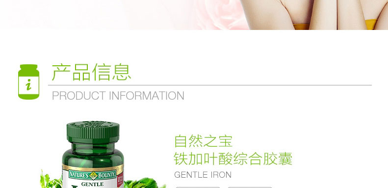 自然之寶Nature's Bounty鐵加葉酸綜合膠囊90粒 補鐵補血的孕媽至寶—— 1、鐵+葉酸+維生素C復(fù)合配方。 2、最易吸收的雙效專業(yè)配方。 3、補鐵補血,養(yǎng)出紅潤好氣色。 |