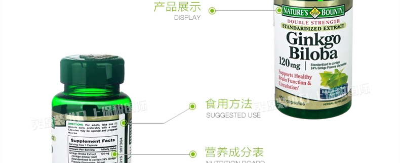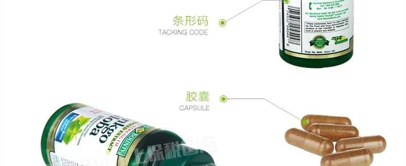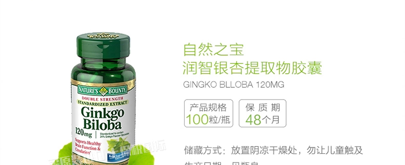 產品說明 美國自然之寶Nature's Bounty 潤智銀杏提取物膠囊Ginkgo Biloba 120mg 防治中風老年癡呆保健品 100粒/瓶——