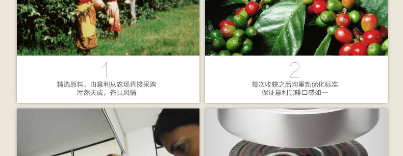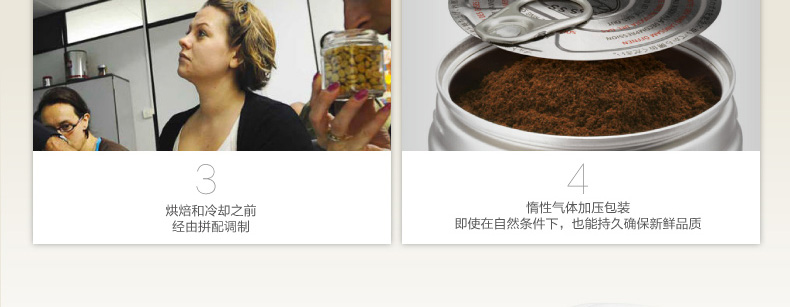 1、9種不同的阿拉卡比咖啡豆為原料拼配,烘焙、研磨而成。 2、惰性氣體加壓包裝,持久確保新鮮品質(zhì)。 3、純正濃醇的意式濃縮咖啡粉。 |