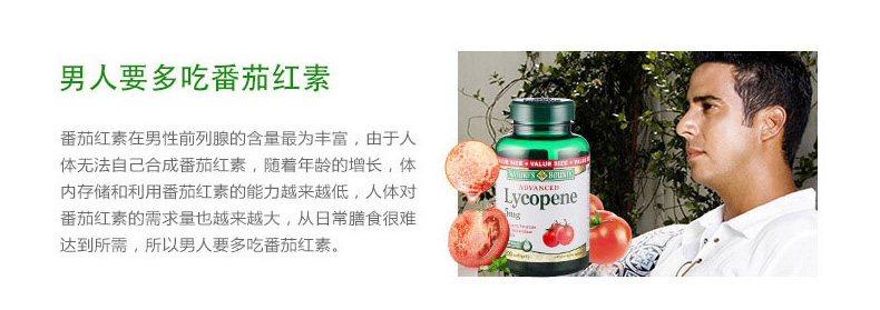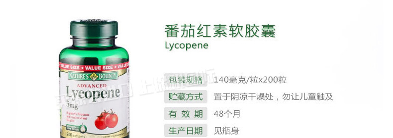 自然之寶Nature's Bounty 140mg番茄紅素軟膠囊大容量200粒裝 男人的健康“好基友” |