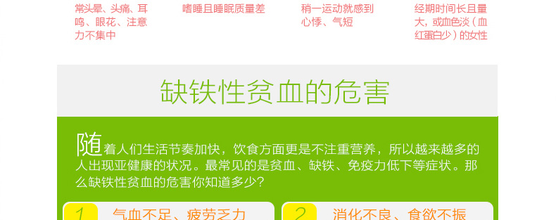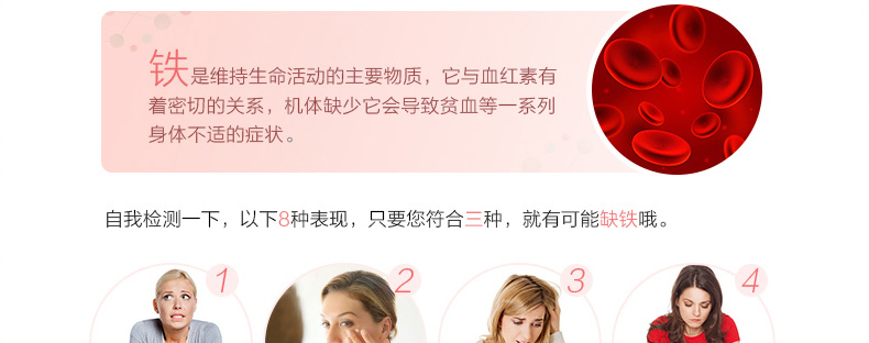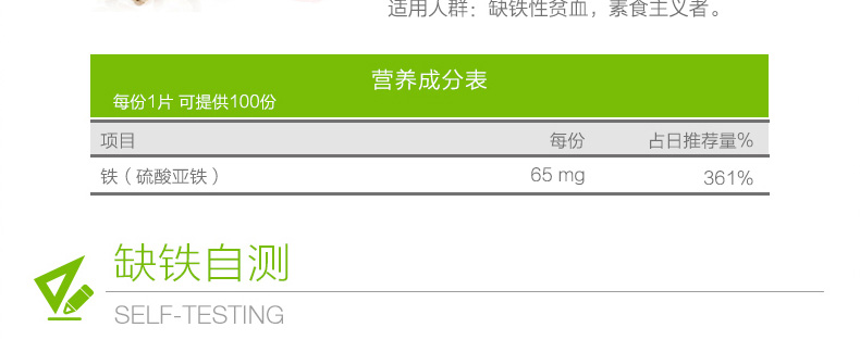 1、每片含有65mg鐵元素。 2、補鐵補血,紅潤膚色,緩解疲勞。 3、改善缺鐵性貧血,提高機體抗感染能力。 |