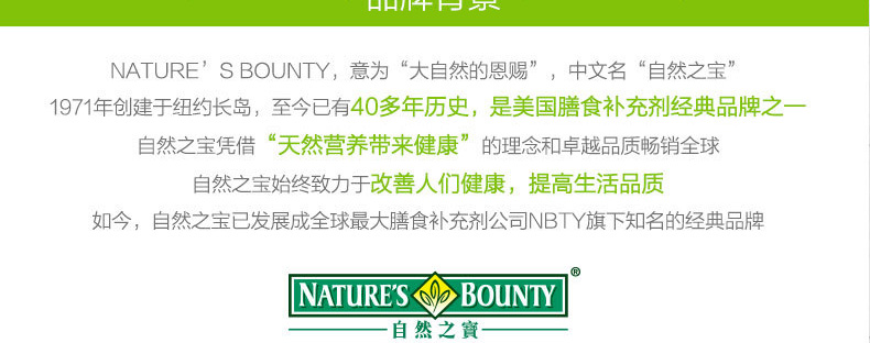 - 品牌:Nature's Bounty/自然之寶
