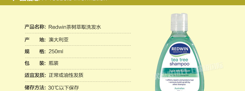 2瓶裝 維特護Redwin純天然茶樹油洗發水洗發露250ml*2 控油去屑防脫—— 1、富含茶樹精油護發成分。 2、深層清潔、清爽控油、去屑防脫。 3、所有發質適用,尤其適合油性發質。 |