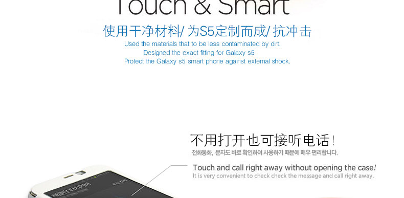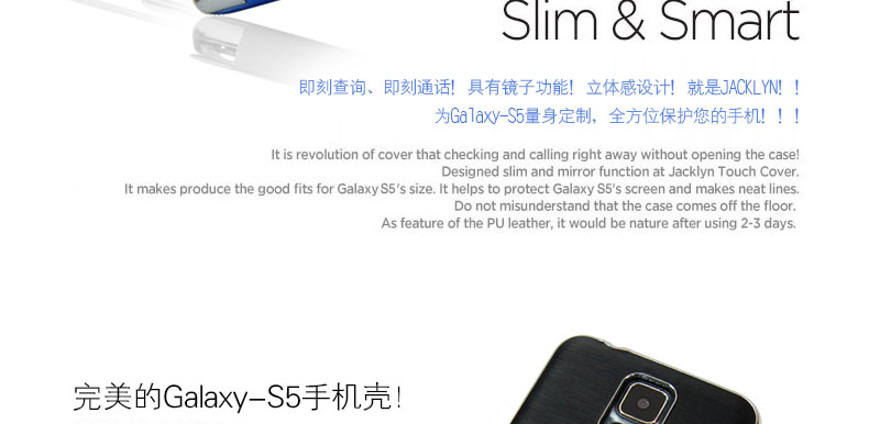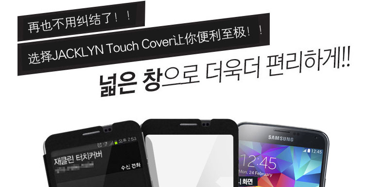 韓國JACKLYN 韓國真皮高檔手機皮套 Galaxy s5—— ①采用韓國創新技術制作,不用打開蓋子也可以隨心觸摸使用手機,還可以當鏡子使用,多功能的手機殼子。 ②手機觸屏感更強,即可查詢,即可通話 |
