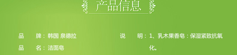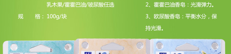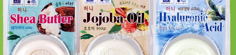 3塊裝韓國泉德拉潔面皂香皂100g/塊 乳木果/霍霍巴油/玻尿酸任選—— 1、乳木果:保濕緊致抗氧化。 2、霍霍巴油香皂:光滑彈力。 3、歐尿酸香皂:平衡水分,保持光滑。 |