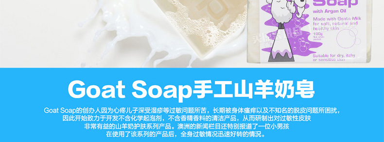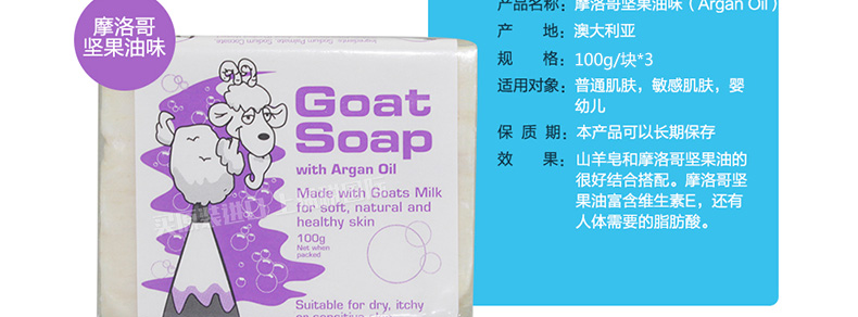 3塊裝Goat Soap摩洛哥油山羊奶皂潔面皂阿爾甘油羊奶皂 享受天然潔膚愉悅感—— 1、含5種芳療冷壓植物油及山羊奶等成分。 2、深層清潔,嫩白保濕,控油祛痘,舒緩修復。 3、潔面、沐浴、剃須都能用。 |