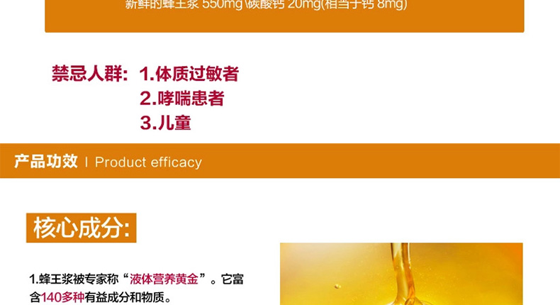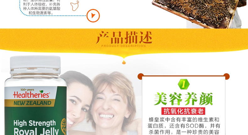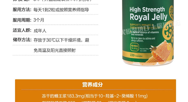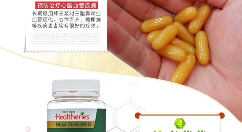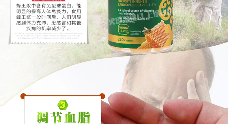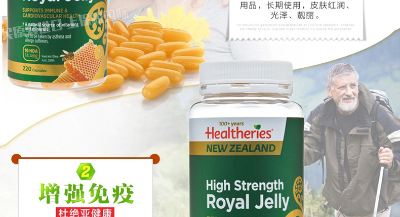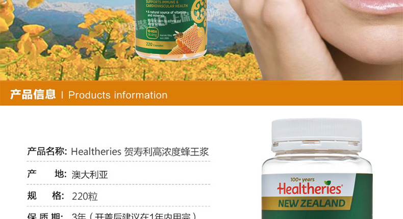 賀壽利Healtheries蜂王漿軟膠囊高濃度蜂皇漿220粒 你的養顏密碼造就不老神話—— 1、每粒含凍干的蜂王漿183.3mg,新鮮的蜂王漿550mg。 2、美容養顏、增強免疫、調節血脂、補充營養。 3、過敏體質、哮喘患者及兒童,不宜服用。 |