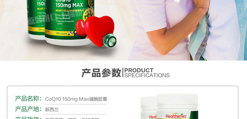 賀壽利Healtheries輔酶Q10膠囊Max 讓心臟年輕的秘密120粒—— 1、每粒含輔酶Q10 150mg。 2、保護心臟、緩解疲勞。 3、降低血壓、保護肌膚。 |
