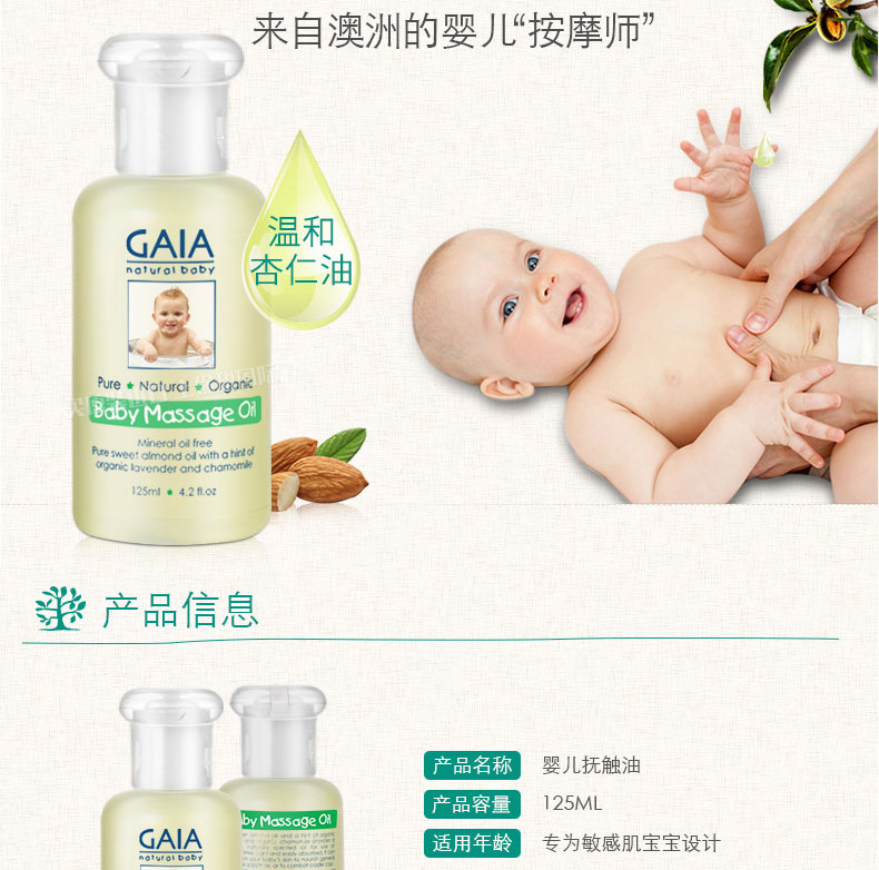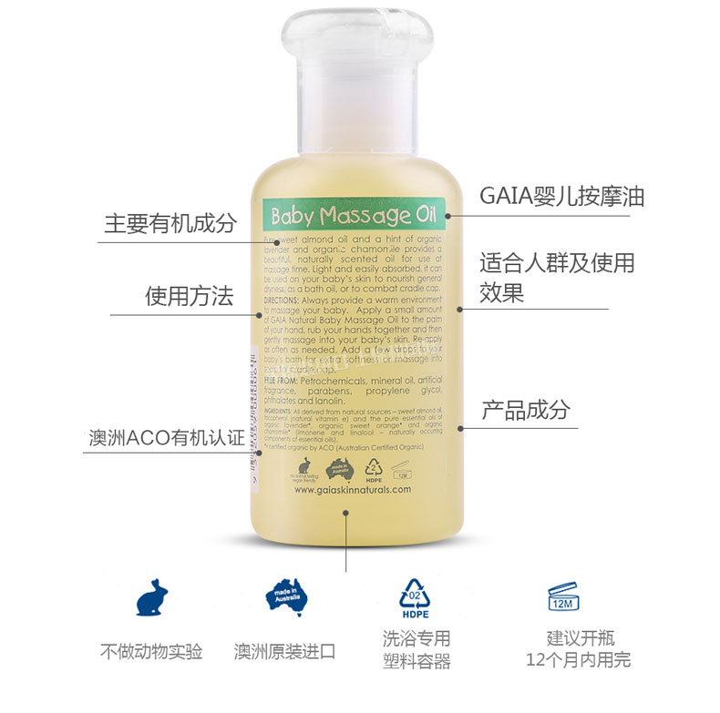 直郵澳大利亞GAIA嬰兒按摩油撫觸油親膚油125ml 來(lái)自澳洲的嬰兒“按摩師” |