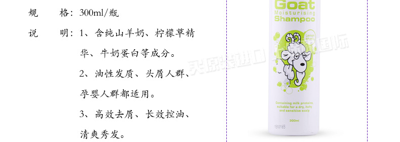 直郵澳大利亞Goat Soap檸檬香桃葉山羊奶洗發水300ml洗發露 讓你無“屑”可擊的天然修復能手—— 1、含純山羊奶、檸檬草精華、牛奶蛋白等成分。 2、油性發質、頭屑人群、孕嬰人群都適用。 3、高效去屑、長效控油、清爽秀發。 |