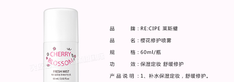 萊斯璧RE:CIPE櫻花修護噴霧櫻花隨身噴霧60ml 小巧玲瓏且大有可為 |