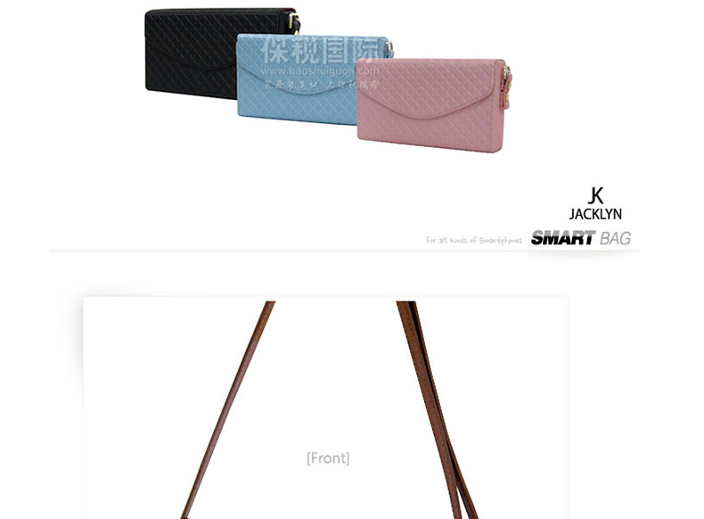 韓國(guó)JACKLYN Smart Bag多功能手機(jī)皮包 All devices—— ①多色高級(jí)PU材料制作 ②外觀(guān)簡(jiǎn)潔大方,包里包內(nèi)設(shè)計(jì)有配套的錢(qián)夾可以放卡跟現(xiàn)金,高檔時(shí)尚且便捷的多功能包 ③配肩帶,長(zhǎng)短可自由調(diào)節(jié) |