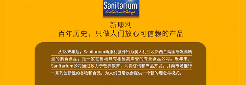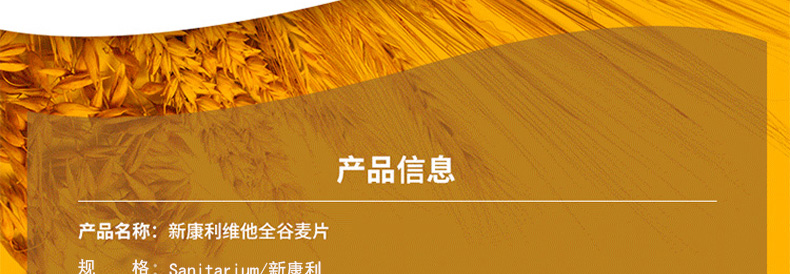 新康利Weet-bix即食麥片全谷低脂麥片375g 方便快捷有營養的美味早餐—— 1、高纖維高蛋白的全谷麥片。 2、營養均衡,方便快捷。 3、即食、沖泡都可以。 |