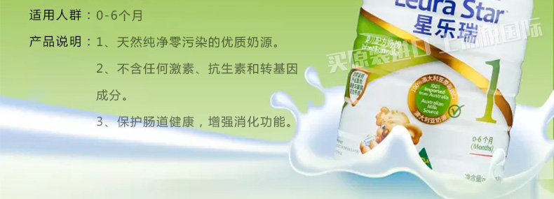 澳洲星樂瑞Leura Star嬰幼兒配方奶粉1段900g 營養(yǎng)均衡純凈零污染 1罐/2罐—— 1、天然純凈零污染的優(yōu)質(zhì)奶源。 2、不含任何激素、抗生素和轉(zhuǎn)基因成分。 3、保護(hù)腸道健康,增強(qiáng)消化功能。 |