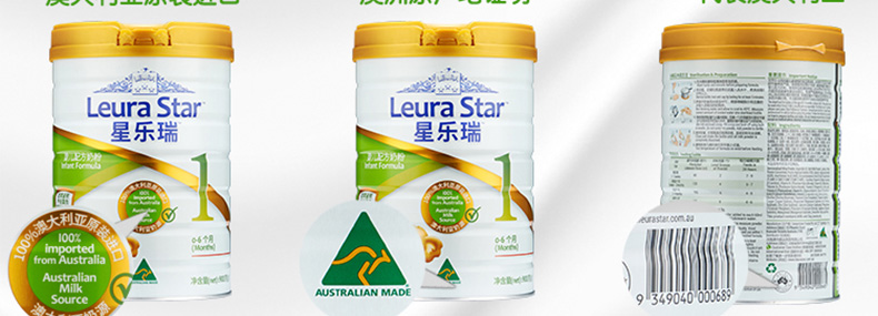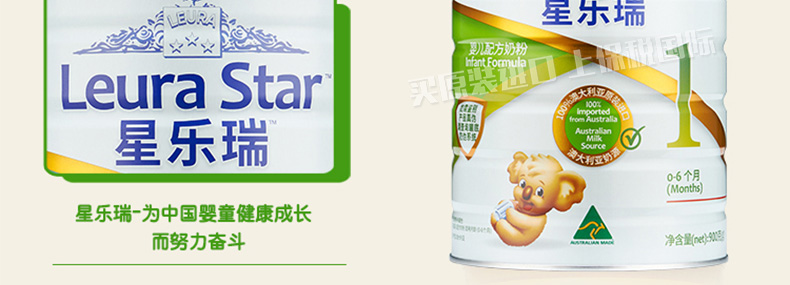 澳洲星樂瑞Leura Star嬰幼兒配方奶粉1段900g 營養(yǎng)均衡純凈零污染 1罐/2罐 |