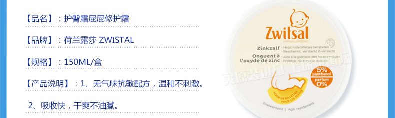 荷蘭露莎Zwitsal護臀膏護臀霜屁屁修護霜150ML圓盒 寶媽們推薦使用—— 1、無氣味抗敏配方,溫和不刺激。 2、吸收快,干爽不油膩。 3、滋潤保濕,舒緩修護寶寶小屁屁。 |