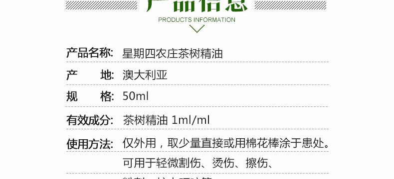 星期四農(nóng)莊Thursday plantation茶樹(shù)精油50ml 祛痘修復(fù) 一瓶/兩瓶—— 1、天然純正茶樹(shù)油。 2、高效抗菌,耐受性強(qiáng)。 3、祛痘殺菌,清潔修復(fù)。 |