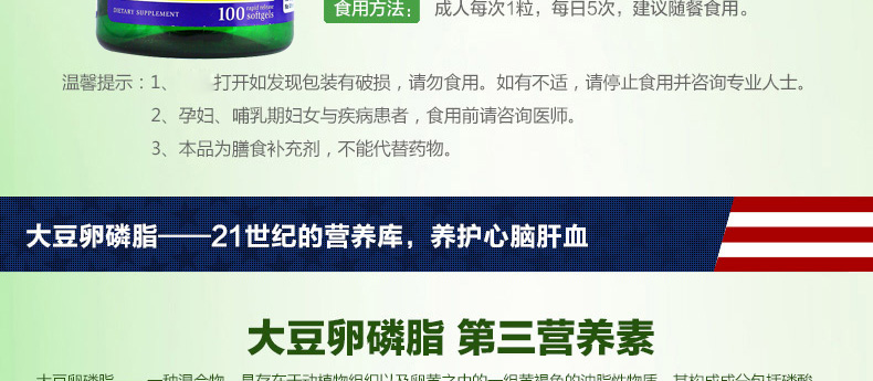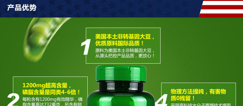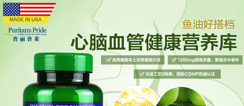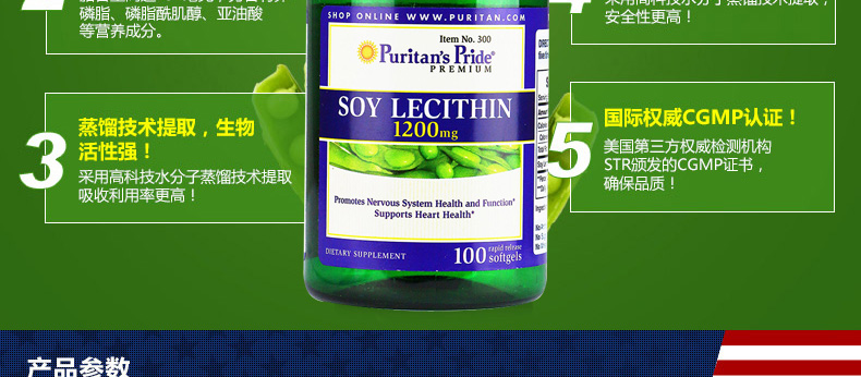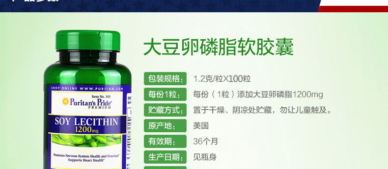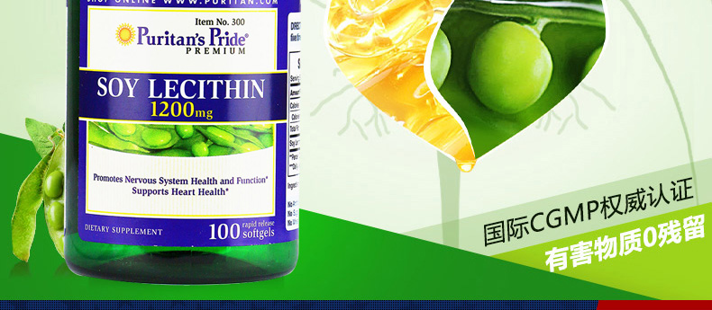 美國普麗普萊(Puritan's Pride) 大豆卵磷脂軟膠囊濃縮版 保護(hù)血管 心腦健康保健品 1200mg*100粒/瓶—— 1、選用美國本土非轉(zhuǎn)基因大豆,優(yōu)質(zhì)原料國際品質(zhì) 2、每粒含有1200mg大豆卵磷脂,磷脂含量高達(dá)732mg。 3、物理方法提純,生物活性強(qiáng),有害物質(zhì)0殘留。 |