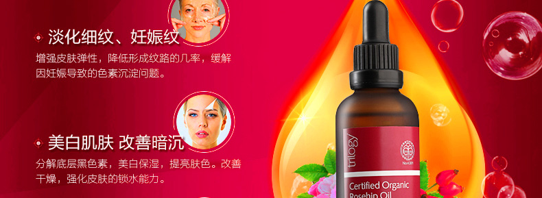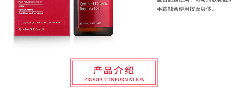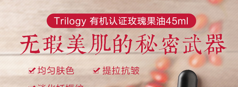 Trilogy趣樂活玫瑰果油 天然有機野玫瑰果油精華 美白淡化細紋 修復痘印孕婦可用 45ml/瓶—— 1、可顯著修護疤痕、妊娠紋和皺紋,提升肌膚平滑度。 2、爽膚水后作為面部精華使用;混合面霜使用;可與潤膚乳或護手霜融合使用按摩身體。 |
