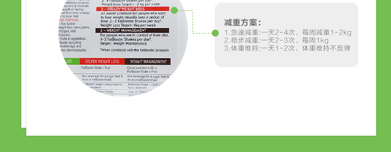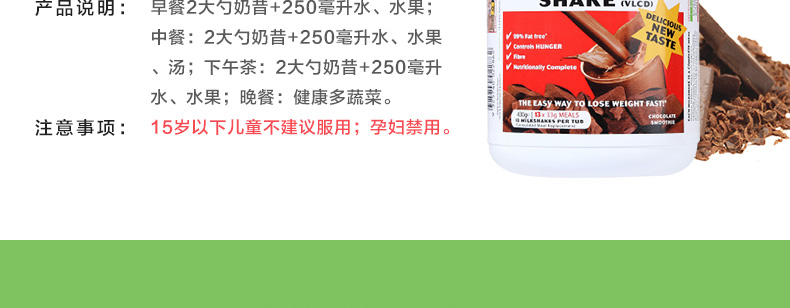 | 多種美體搭配方案,多吃不怕胖,安心做吃貨。每盒奶昔可以代替13次正餐,一般一盒是6-7的量。 |